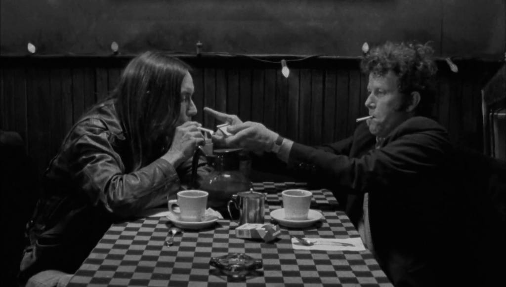 في هذا الفيلم -الذي كتبه جارموش أيضًا- “قهوة وسجائر” ليس ثمّة قصَّة، بل مجموعة قصص لا رابِط بينها إلَّا القهوة والسجائر، وبالتالي ليسَ هناك أي حبكة، ويبدو لي أنَّ الحبكة ميّتة أو مقتولة في سينما جارموش لغايةٍ ما، ربما كتمرُّدٍ على أشكال السينما التقليدية، أو كنوعٍ من التأكيد على حرية المخرج واستقلاليَّته (سأتأكد من ذلك في أفلام جارموش الأُخرى)، والشخصيَّاتُ ليست من ذاك النوع المركّب أو المُعقّد، وبعض الممثلين والموسيقيين يقدّمون شخصيَّاتهم الحقيقية (توم وايتس، ذا وايت سترايبس، بيل موراي، ستيف كوغان، ألفريد مولينا…) وإن كانت ليست كما هي في الواقع تمامًا!.. والموسيقى تُستخدم بمحدودية، في سياقاتٍ معيّنة.