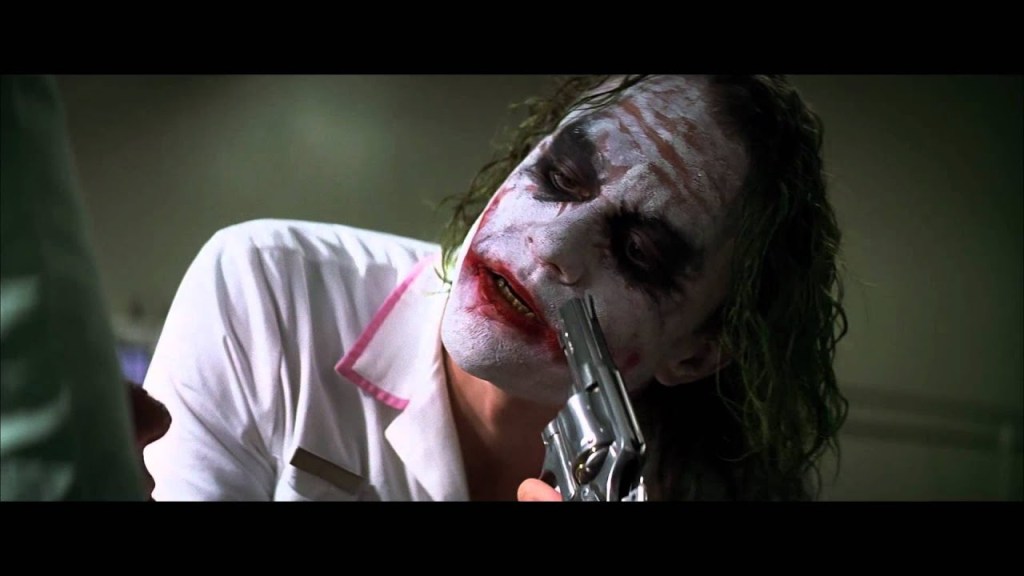 ضِدّ الجوكر تبدو كل القوى والأسلحة بلا جدوى؛ فهو كممثّلٍ لقوّةٍ عدميةٍ ومجنونة، لا يسعى للثورة بمعناها التقليدي أو الرومانسي، فلا يعنيه تغيير الأوضاع أو قَلبُها والتمرُّد على السُلطة.. هو رَجلٌ يريد مشاهدة العالم مُحتَرِقًا، ولا تملك القوة المُضَادة له أي شيءٍ حقيقي وذي فعالية ضِدّه! وفي المواجهة الأخيرة بين البطل ونقيضه، لا ينتصر صحاب المبادئ غير القابل للإفساد على المُهرّج العَدَمي، إذْ ينتهي الفصل الثاني من الثلاثية، بفوز “عميل الفوضى”، حين تُفلِحُ ألاعيبه في صيد عفاريت چوثام (باتمان، هارڤي دينيت) وإسقاط واين في ظلام الهزيمة واليأس!