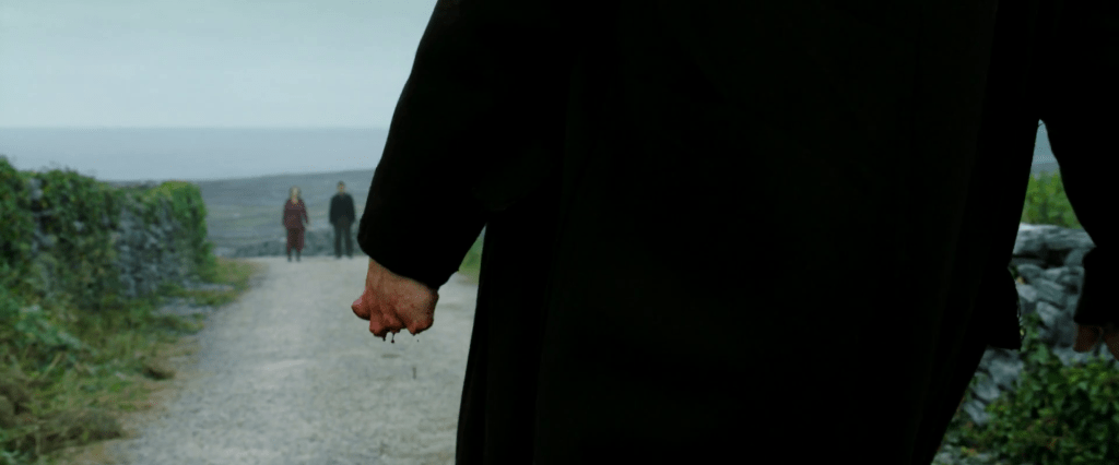 لكن ما هو غير مفهوم، لا يقتصر على ما هو “ماورائي”؛ فهناك ما يشبه “جبل الجليد الغائر” وتحديدًا في شخصيات البطلين، اللذان تبدو الكثير من جوانب حياتهما غير مفهومة: لِمَ يغيب البعد العاطفي/الرومانسي عن حياة الرجلين؟ وكم يبدو منطقيًا ما ألمَح إليه الراهب في الكنيسة من علاقة مثلية كانت تجمعُ بينهما؟ مع استبعادها في سياق الفيلم، لكن في سياقٍ آخر قد تبدو جدًا مُحتَمَلة! لا حُبّ ولا علاقات جنسية في حياة بادريك وكولم، وقد يبدو الأمر مفهومًا في حياة الأخير بالنظر إلى سنّه وتجاربه، لكنّه ليس كذلك مع الأوّل، مع بادريك الرجل الطفل، البالغ غير الناضج، الذي لا يزال يعيش مع أخته وتربطه بها علاقة اعتمادية -وربما قد نُغالي ونَصِفُها بالطُفيلية- تبدو فيها أقرب للأم من الأخت.