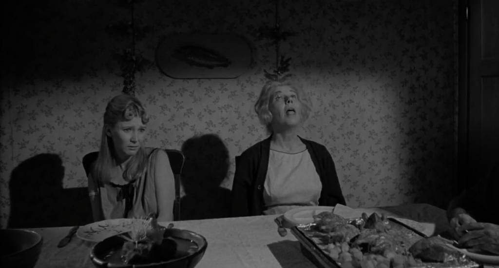 أكثر مشاهد العمل إزعاجًا، هو مشهد زيارة هنري لعائلة “حبيبته”. هذا المشهد أرى فيه كره العائلة وجنونها وتناولها كسيرك يُخرّج مسوخ ومشوّهين أو مهرّجين في أحسان الأحوال. حركات غريبة تصدر عن الأم والابنة وأبٌ مشوّش، ومتقلّب بين العصبية والبلادة. كل شيء في هذا المشهد كريه ومقرف، الأشخاص وأشكالهم، العجوز التي لا تتحرّك وفي فهمها سيجارة في المطبخ، الدجاجة المشوية التي تتحرّك على الطاولة وينفجر منها الدم. إنّ كل شيء هُنا ضد “عفاريت” الزواج والارتباط والعائلة النووية تحديدًا والتي تظهر في العادة بصورةٍ حميمية دافئة، لكن ليس في عالم لينش، المضاد لما هو مُعتاد.