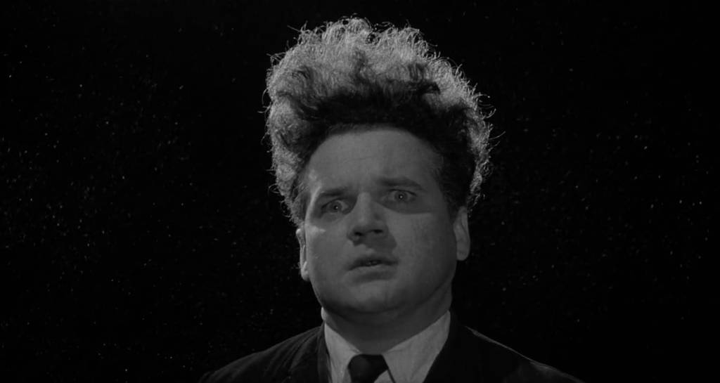 1.معلومة شخصية عن علاقتي بهذا الفيلم: هو من أوائل أعمال لينش التي عرفت عنها، لكني لم أشاهدها. لقد هناك على الدوام خوف، توجّس، وباعثه ليس أنّي شاهدت إعلانه أو مشاهد ولقطات منه أو قرأت شيئًا عنه، حرفيًا لم أرى منه شيء إلّا صورة واحدة: صورة الملصق الرسمي للفيلم الذي يظهر فيها “البطل” هنري بشعره الغريب ونظراته القلقلة المفزعة.. فقط لا غير، وكانت هذه الصورة كفيلة لإثارة الريبة والابتعاد عن الفيلم وتجنّب معرفة شيء عنه، وما عزّز هذا الشعور أنّ أوّل عمل شاهدته للينش قبل أكثر من 12 عامًا كان الطريق السريع المفقود (1997)، وبعده لم أستطع النوم جيدًا لمدّة أسبوع تقريبًا! لكن هذا الأخير ومع كل الارتياب والقلق والغرابة التي فيه، يبدو مجرّد تسالي.. مقارنةً بـ”رأس الممحاة”.
